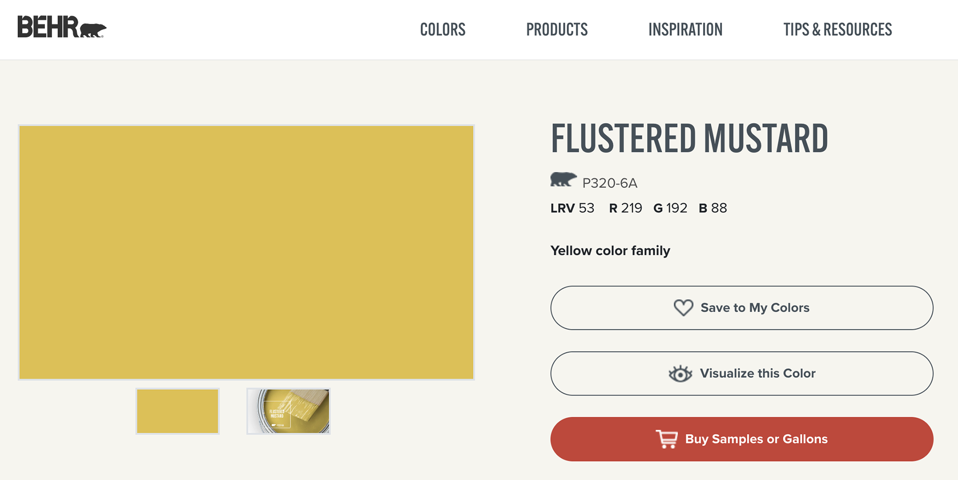 Emily and DIYers delivered, and you can now find Flustered Mustard, Not Quite Purple and Mossed Opportunity on Behr.com and Home Depot.
